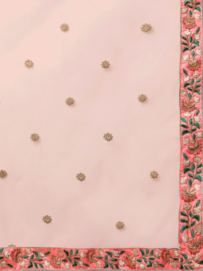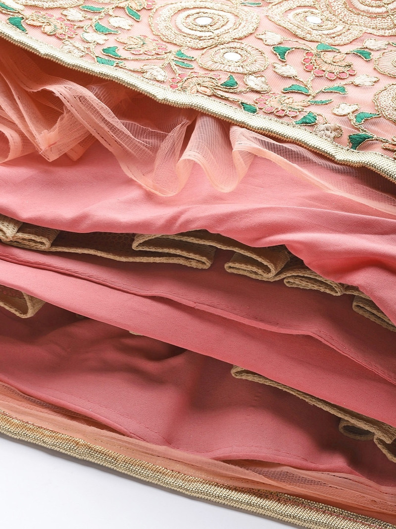 The Elegant Peach Designer Lehenga With Embroidery Work Is A Outlandish Outfit That Will Make You Stand Out In The Crowd. If You're Fond Of Pastels, Buy It Now. Indulge Yourself With This Luxurious Piece And Make Your Occasions Unforgettable And Special. The Lehenga Is In Net Embellished With Sequins Embroidery With Dori, Mirror, Thread And Zari Work All Over. The Blouse Piece Is Also Embellished With Sequins, Zari, Dori And Thread And Mirror Embroidery Work. Soft Netted Embroidered Dupatta Seems To Be Chic And Great For Any Function.