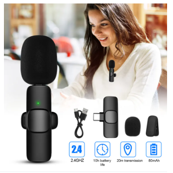 K8 Wireless Microphone Professional Type-C K8 Wireless Lavalier Microphone Upgraded Plug-Play Auto-Syncs Mic For Vlogs Interview Youtubers Wireless Microphone